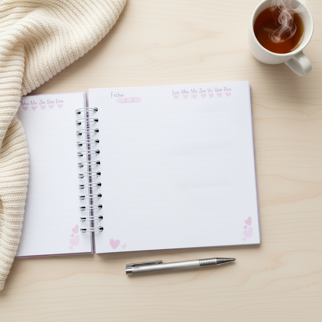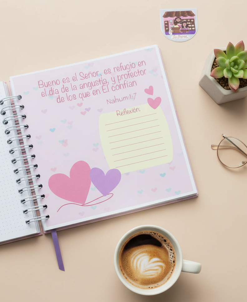 Lleva tus apuntes devocionales de manera organizada y creativa con nuestro cuaderno exclusivo de fe y colores. Diseñado para acompañarte durante todo un año, cuenta con aproximadamente 144 hojas punteadas con fecha, ideales para escribir, reflexionar y profundizar en la Palabra de Dios.
