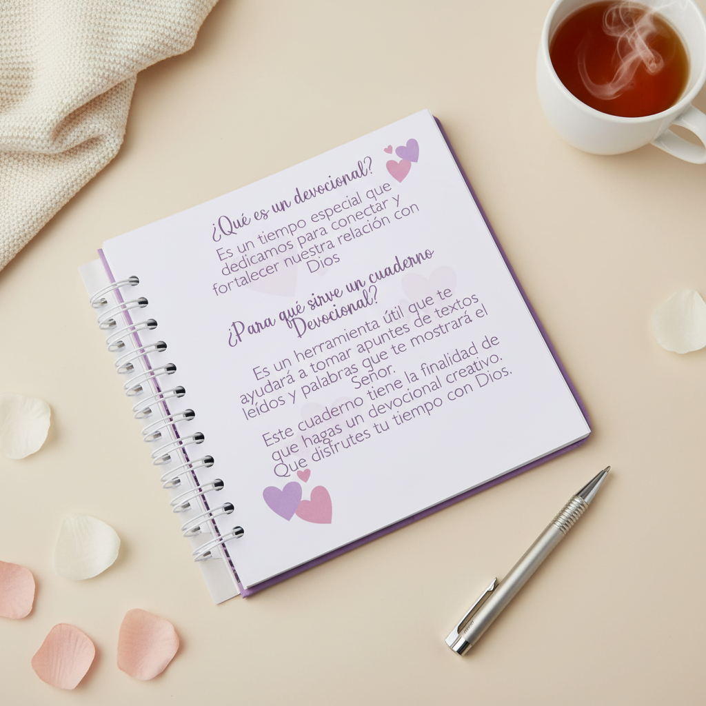 Un cuaderno diseñado para fortalecer tu relación con Dios mientras registras cada enseñanza, oración y reflexión diaria. ¡Hazlo tuyo hoy!